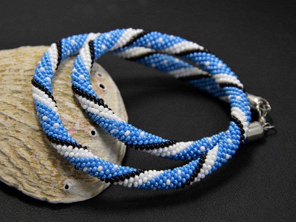 Ručně háčkovaný náhrdelník (dutinka) z rokajlu Preciosa technikou pevného oka.